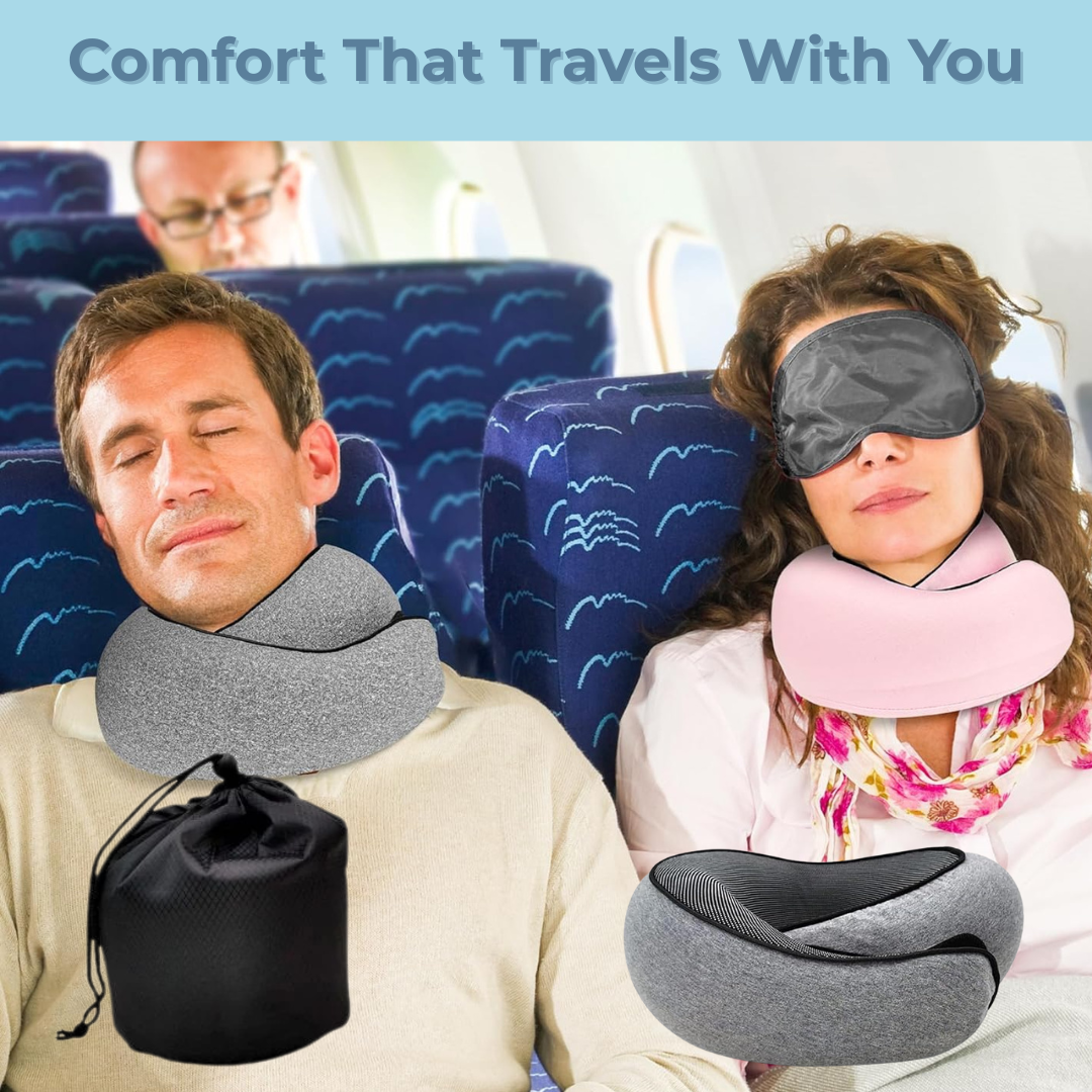Our ergonomic pillow offers 360-degree neck support for restful travel sleep.